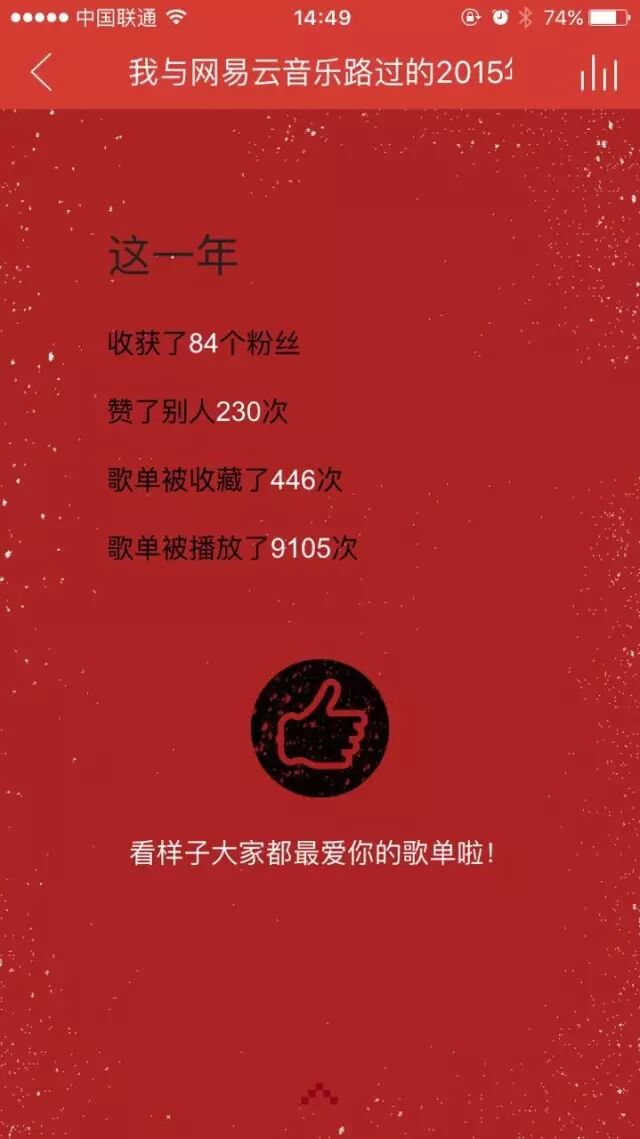 @遙遠街道的盡頭:2015很高興遇到瞭網易雲音樂,進入瞭ACG音樂,在雲音樂聽到瞭很多好歌,有瞭本命歌手,還認識瞭很多小夥伴,謝謝雲音樂和民娜桑,2016也會一直在雲音樂。