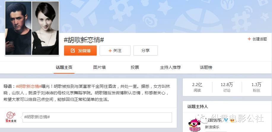 #胡歌新戀情#的話題也一度飄在熱門話題上不肯下來。畢竟這貨今年又是瑯琊榜又是偽裝者,高熱度男神+男神禁忌(並沒有那種意思)的戀情,這個閱讀量不破兩億簡直浪費風行的一片心意。