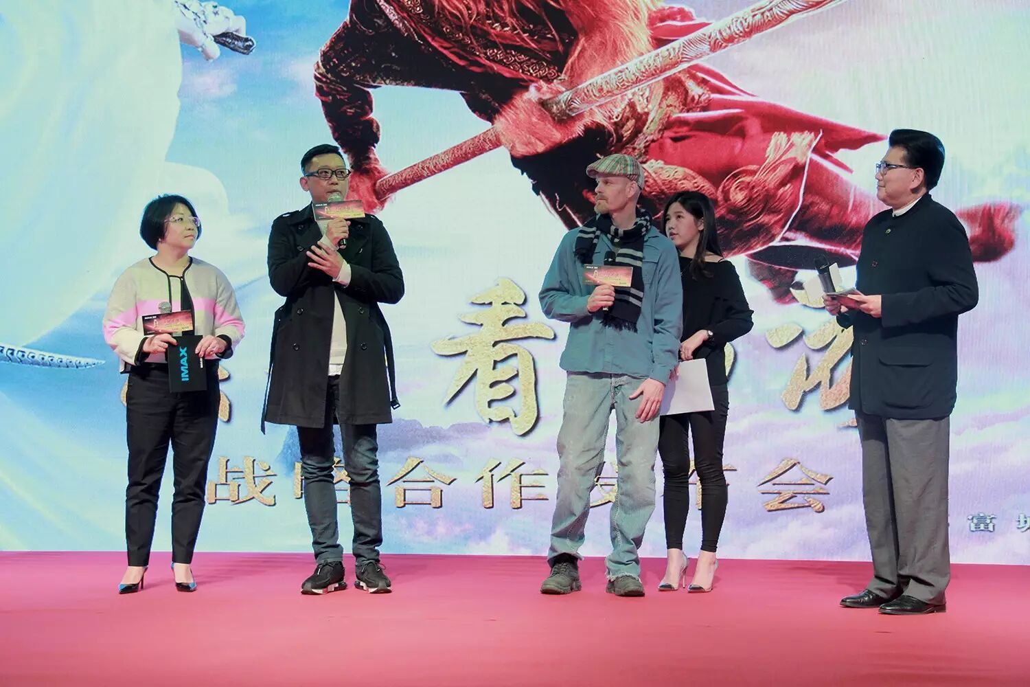 發佈會上,首先上臺的IMAX大中華區首席營銷官周美惠女士,談及此次IMAX春節檔選擇《三打》作為最重點力推影片的原因時,表示:"《三打》吸引我的原因首先是優秀的團隊,從主創、攝影到視效制作團隊都是一流的;其次,《西遊記》本身就是中國文化經典中最具魔幻想象力的一部作品,而三打是其中最精彩的故事之一。鄭導運用當前一流的技術,以大量的視效場面將書中場景表現得震撼而逼真,這些場面和IMAX技術融合的很完美。"