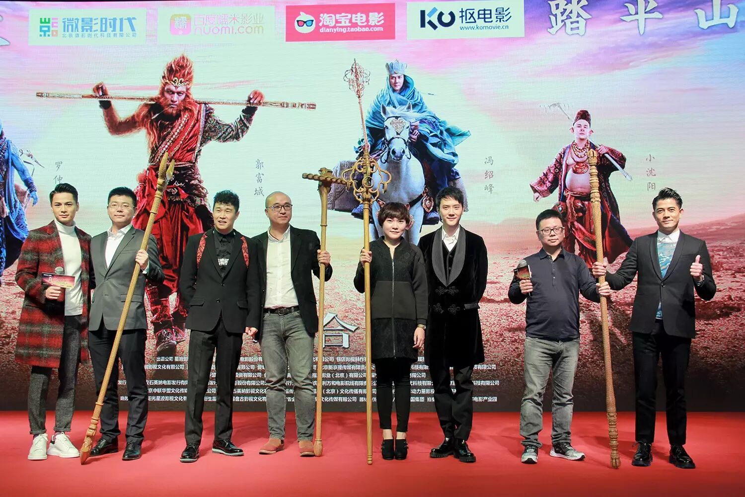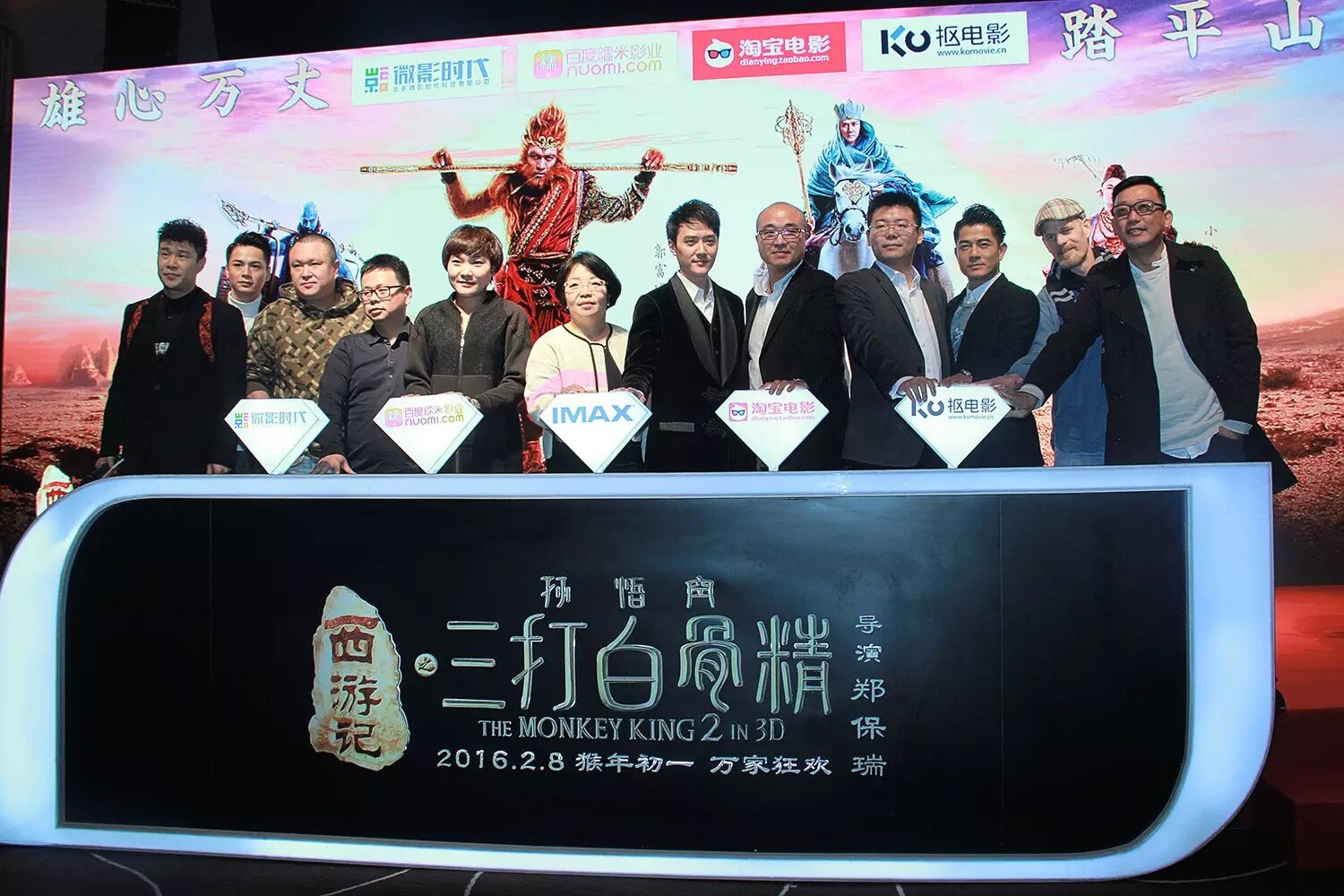 1月6日,3D奇幻喜劇《西遊記之孫悟空三打白骨精》在上海舉辦瞭規模盛大的"猴年看西遊"戰略合作發佈會,"西行四聖"郭富城、馮紹峰、小沈陽、羅仲謙繼去年上海電影節之後再聚首,郭富城現場肩扛金箍棒神還原美猴王靈活英姿,"本地唐僧"馮紹峰用上海話詼諧點評仨徒弟,被"二師弟"小沈陽當面"戳穿";現場,IMAX宣佈瞭與《三打》的重磅合作:將在猴年春節檔最重點力推《三打》;同時首次宣佈,微影微票兒、百度糯米、淘寶電影、摳電影四大節假日期間占據全國出票量高達70%的票務電商,將在即將到來的春節檔與《三打》進行獨傢深度戰略合作,在電影之外用 "第四打"助《三打》在春節檔奪得票房冠軍。