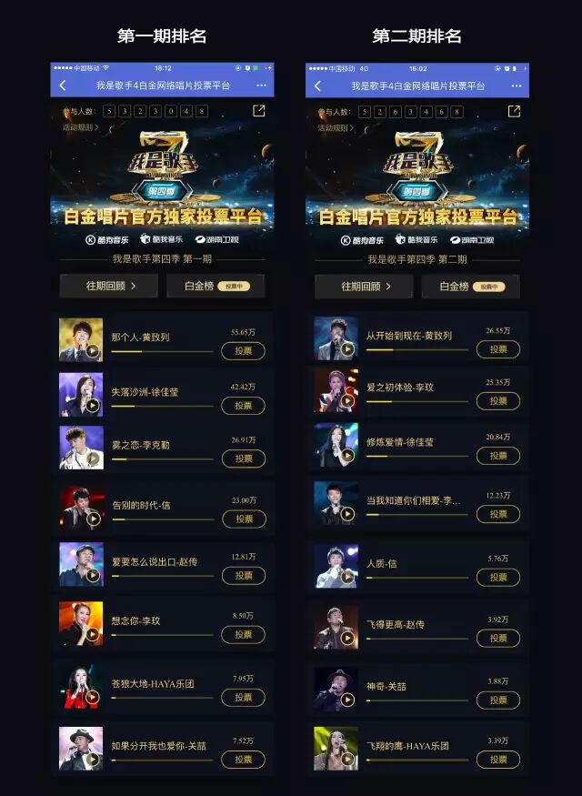 《我是歌手4》攜手酷狗酷我創建的【白金網絡唱片】官方獨傢投票平臺,這一期已經到瞭每3期截取一次投票數據的賽點瞭,今晚節目播出後,該平臺將第一時間更新第三期的音源,更新投票系統,哪十首歌能夠進入《我是歌手》首張【白金網絡唱片】,都由你們決定,第一時間掃碼投票,你說瞭算!
