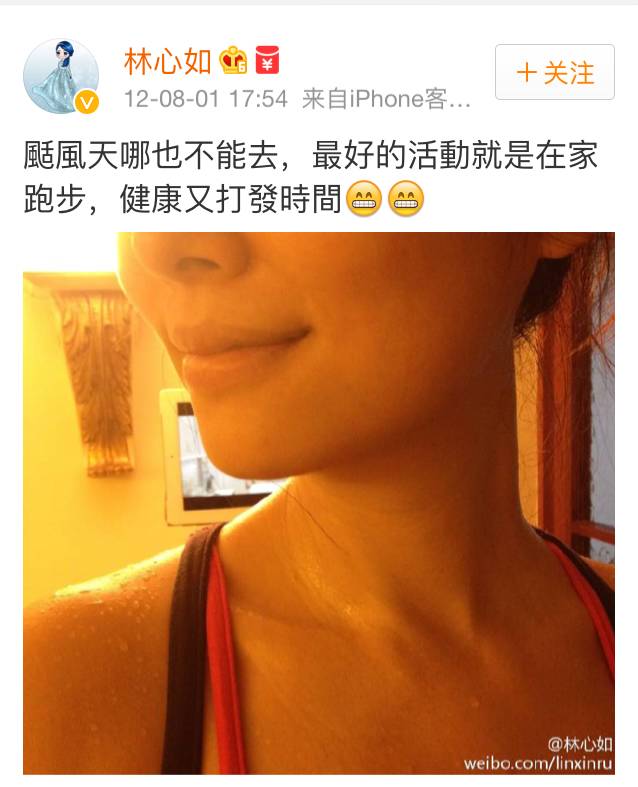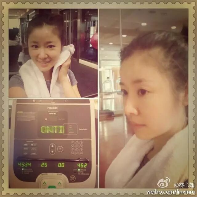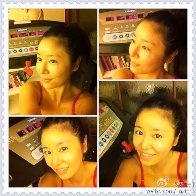 她在微博曬滿的自己的運動照,會和跑步機親密合影,會為瞭貪吃"懲罰"自己,會時常督促自己。她的運動素顏照真的是毫無瑕疵!