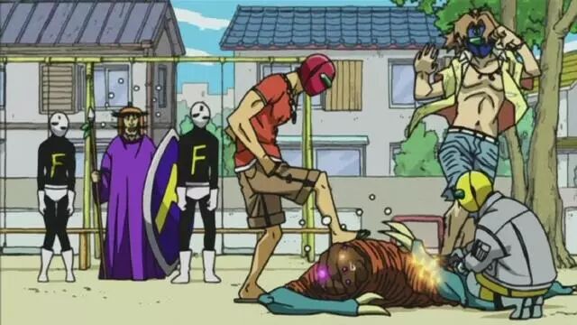既然是正義與邪惡之戰,那麼不打架肯定是不行的,班普和桑雷德很難得的是私下鄰裡關系很好的一對宿敵,所以他們的戰鬥方式也很文明——約戰!一直以來,在兒童公園裡的戰鬥陣容一直都很穩定:拿著紙糊槍盾的班普大人負責在戰鬥怪人因打工、學習、失戀等原因而遲到時與桑雷德東拉西扯的聊天轉移其註意力消磨時間;兩個小兵負責在戰鬥開始時擺出各種挑戰骨骼極限的怪異姿勢並發出怪叫來制造戰鬥氣氛,而且在必要時還要為桑雷德跑腿買蓋澆飯綠茶什麼的補品來平息他的怒氣;最後的成員就是每次都不一樣的戰鬥怪人,他負責……被秒殺。桑雷德的戰鬥從來都是在1秒之內結束,然後揮一揮衣袖,低調的走人。