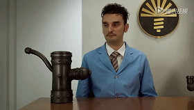 男主用手中的壓力閥從出口處拿到一枚玻璃球,隨後將玻璃球放進瞭嘴裡。