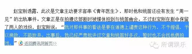 還有,北京爺們還很厚道,在姚迪文章出事兒時,趙寶剛不拋棄不放棄,在《青年醫生》劇中保留瞭兩人的戲份,趙寶剛還說瞭下面這段話↓↓