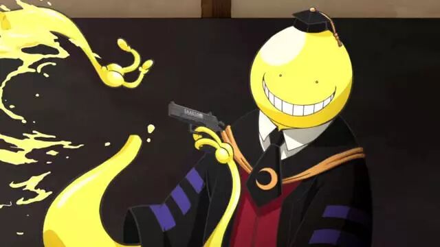 看《暗殺教室》之前,筆者從來沒想過一個黃色的大章魚型生物也可以很男神。要論顏值,這位大哥除瞭外形比較和諧沒有太強的視覺殺傷力之外,也算不上美人一個,可是人傢強,可以在天上飛,可以分分鐘繳獲導彈,可以去夏威夷享受美景之後回十一區的傢順道買個零食……但是強大並不是殺老師最萌的地方。殺老師,如名所言的確是老師,不論何時他總是為學生著想,即使身處危險也不例外,雖說這幫熊孩子的終極目標是K掉殺老師獲得巨額獎學金……不對,是獎金。