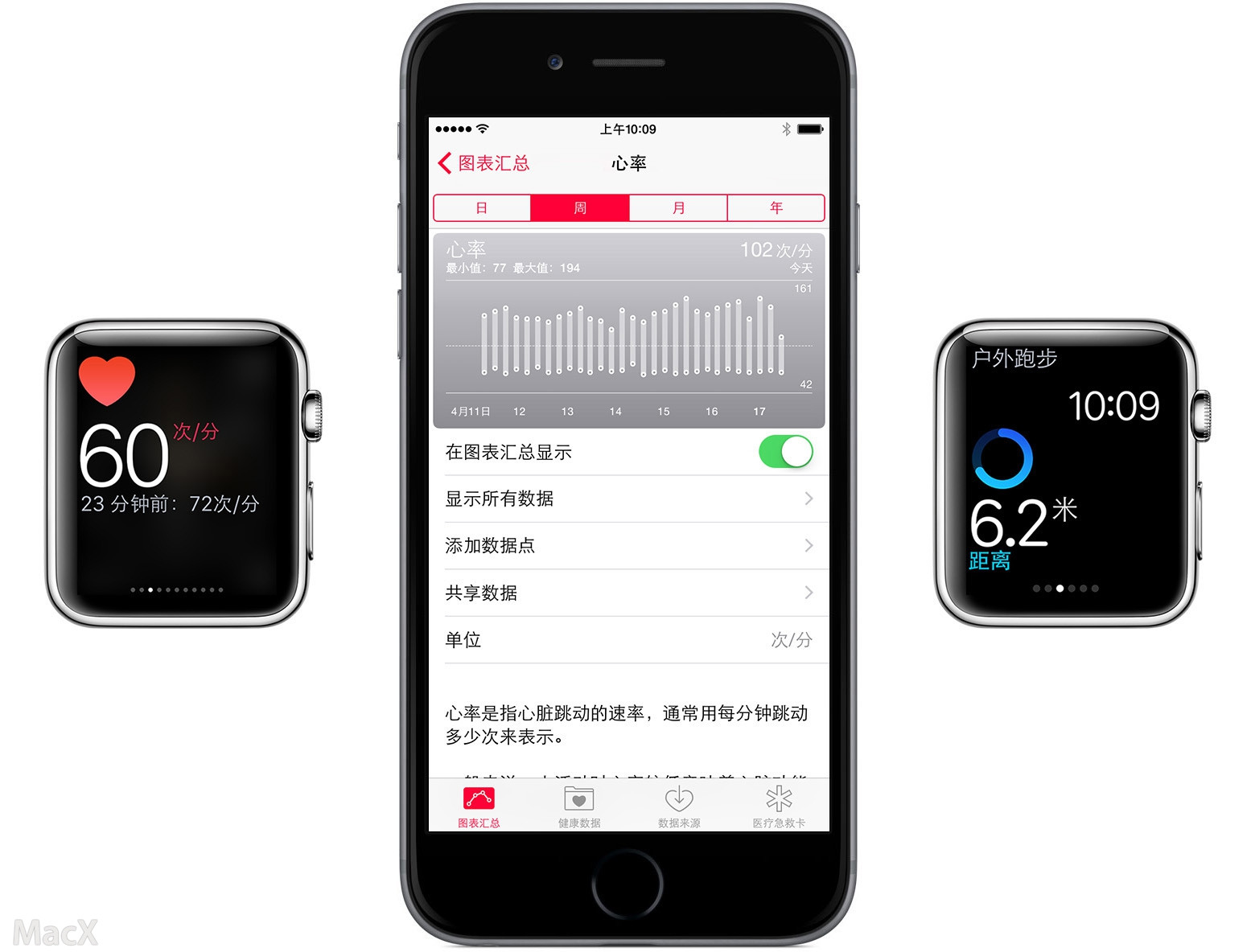 Apple Watch 測量心率的方法。