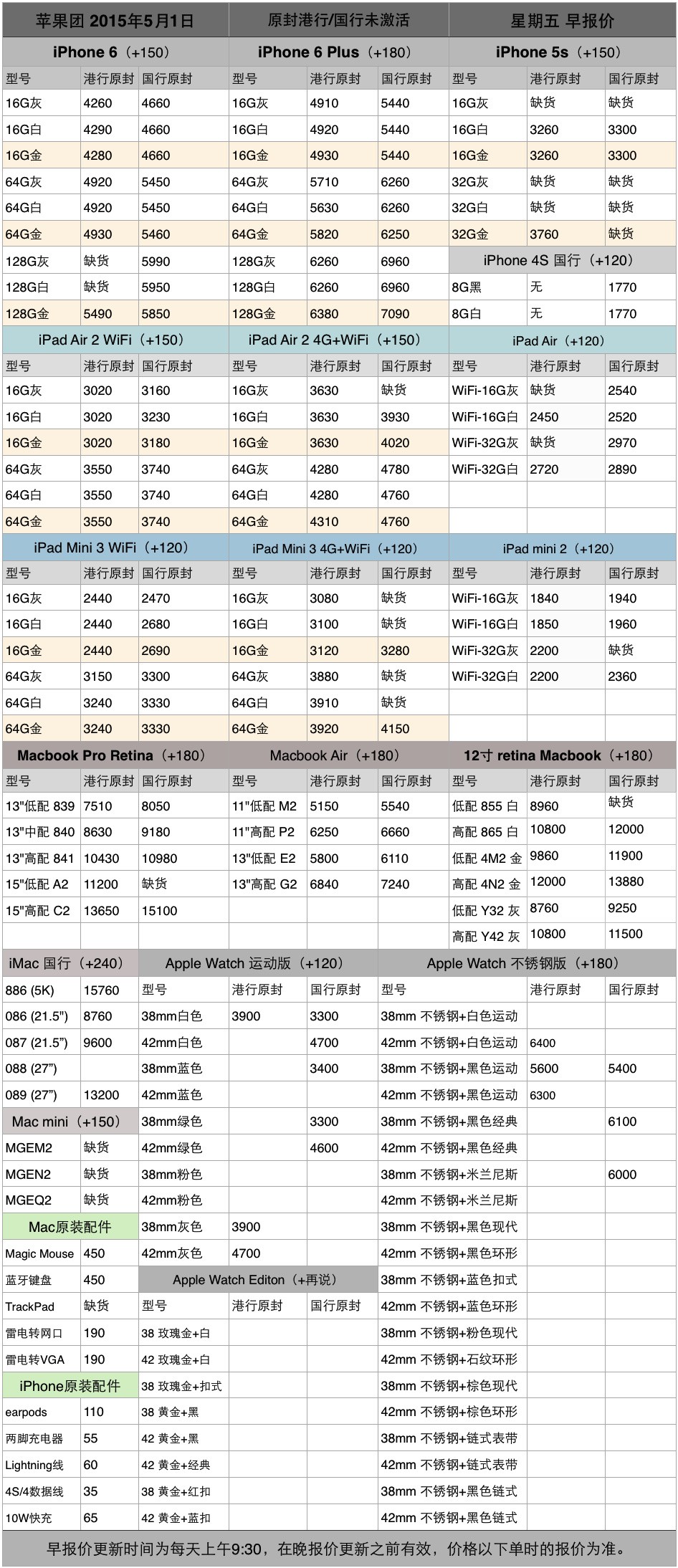 5月1日蘋果全系列產品報價