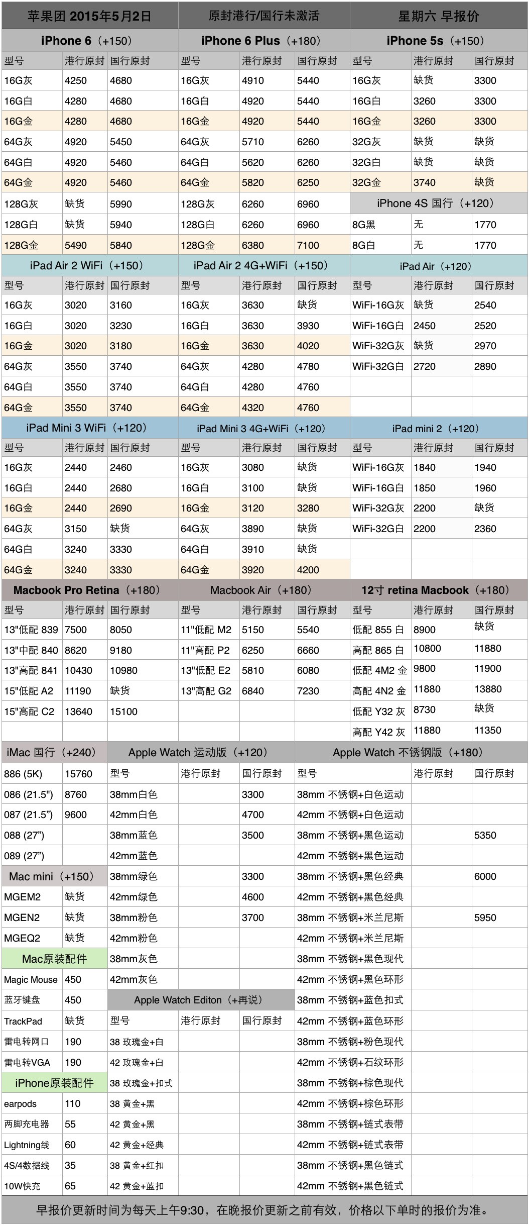 5月2日蘋果全系列產品報價