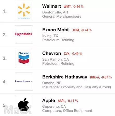 Orignal From: 2015年財富美國500強排行榜公佈,蘋果強勢進入前5