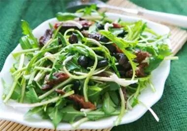當然,所有的野菜都可以用來做餡兒,蒲公英也不例外,但焯過再剁碎的做法,從營養學角度來看,並不科學,因為含金量高的成分有可能都趁著細胞壁的破裂而逃之夭夭瞭,隻有最簡單、最天然的食法才最能保留蒲公英的營養,那就是——洗洗涮涮,直接蘸醬吃!春季的早餐或晚餐,進食一些溫腎壯陽、健脾和胃、益氣養血的粥,如雞肝粳米粥、韭菜粳米粥、豬肝粳米粥,裡面用上蒲公英末,就是很好的食療粥瞭,如果用蒲公英清炒肉絲,再吃上一碗香米飯,那更是絕佳的配搭!