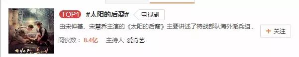 《太陽的後裔》果然不負眾望,輕輕松松拿下熱搜第一,喬妹~~額耐你!!