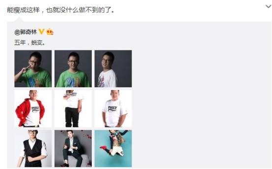 昨天早上,郭德綱轉發並評論瞭一條微博"能瘦成這樣,也就沒什麼做不到的瞭。"